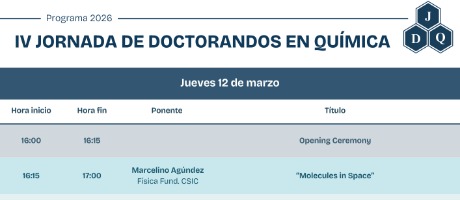 • Jornadas para estudiantes de doctorado que deseen dar a conocer su trabajo investigador,  organizadas por la RSEQ, Sección Castilla, incluyen exposiciones orales de estudiantes, así como sesiones de exposición de pósteres, ofreciendo un espacio para compartir resultados, generar discusión científica y fomentar colaboraciones. Y, al igual que todos los años, ¡Los estudiantes de máster sois más que bienvenidos a participar!