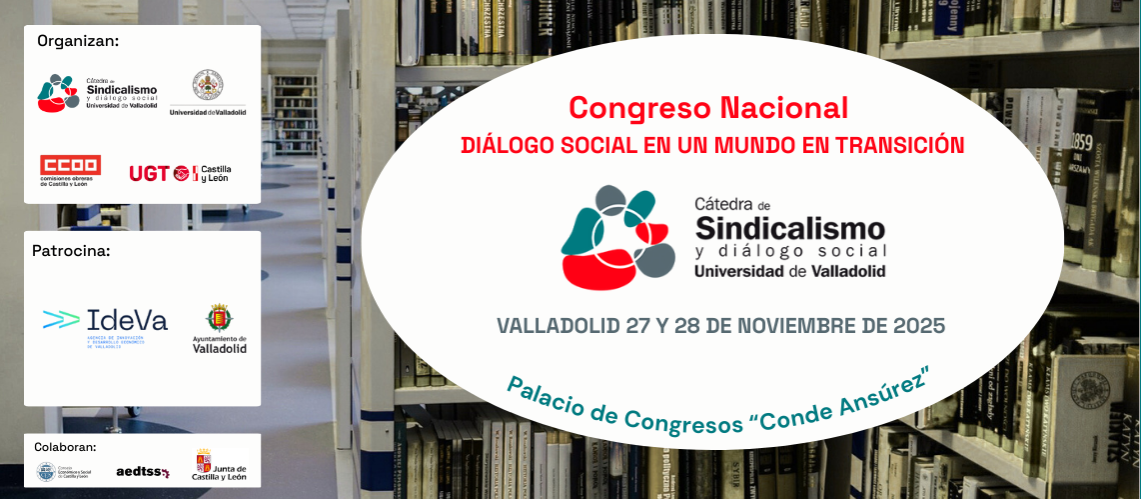 La cátedra de Sindicalismo y Diálogo Social organiza el Congreso Nacional que se celebrará en la ciudad de Valladolid el 27 y 28 de noviembre de 2025 con el título EL DIÁLOGO SOCIAL EN UN MUNDO EN TRANSICIÓN.