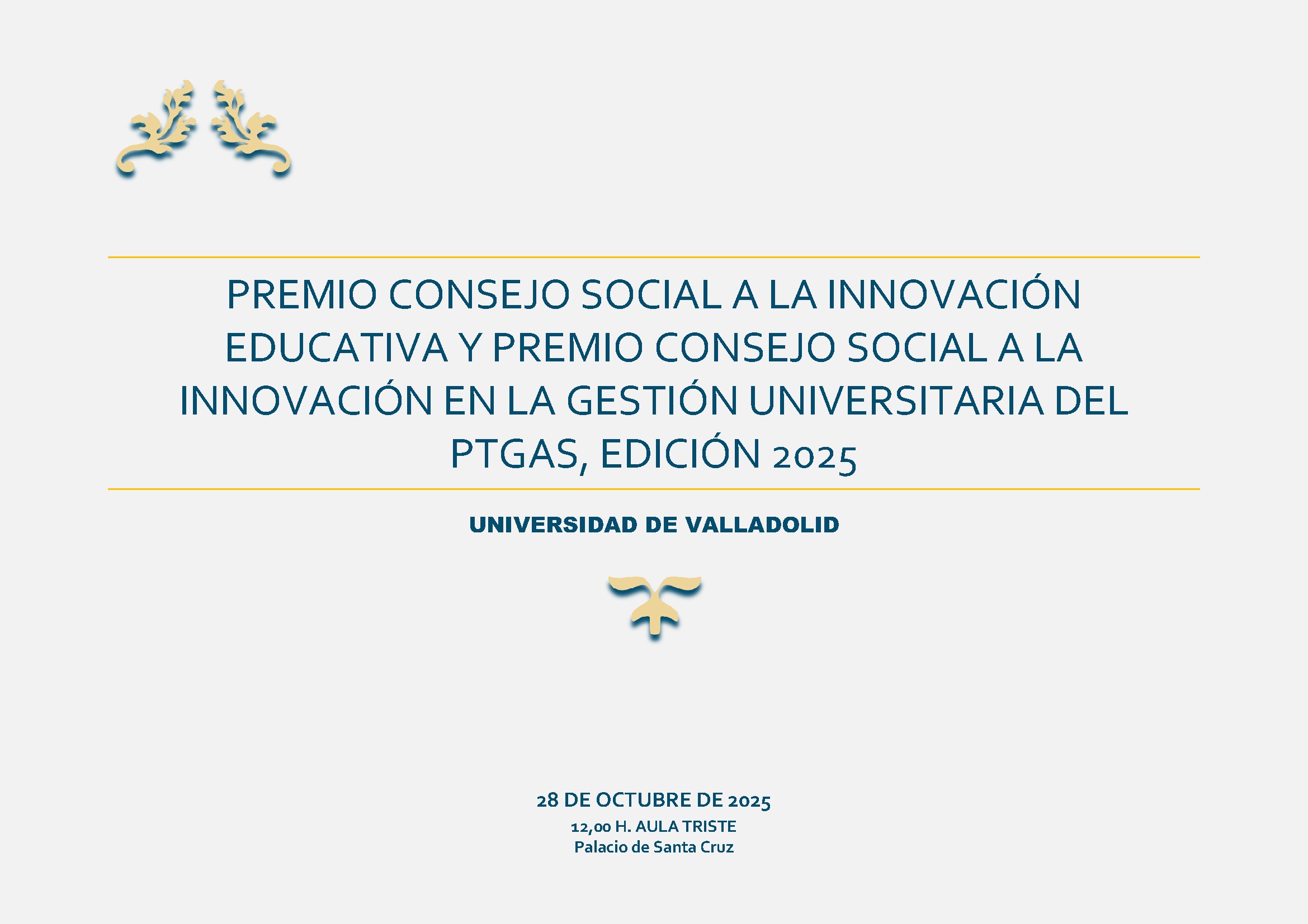 PREMIO CONSEJO SOCIAL A LA INNOVACIÓN EDUCATIVA Y PREMIO CONSEJO SOCIAL A LA INNOVACIÓN EN LA GESTIÓN UNIVERSITARIA DEL PTGAS, EDICIÓN 2025