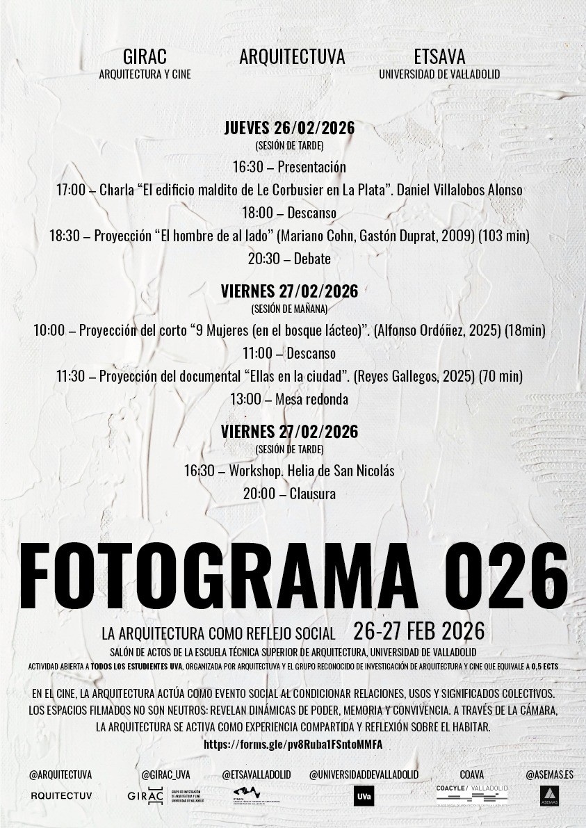Fin: Viernes, 27 febrero 20:00 - Escuela Técnica Superior de Arquitectura . Universidad de Valladolid (ETSAVA), Avenida de Salamanca, Valladolid, España