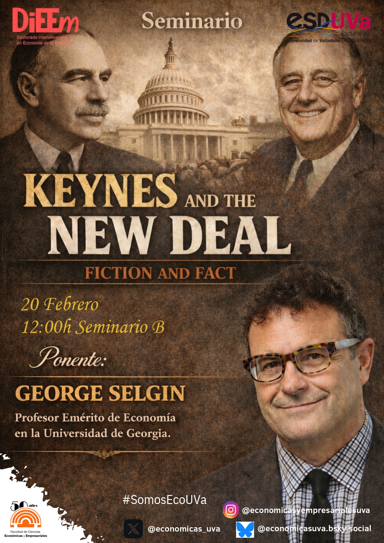 Seminario de investigación con George Selgin, profesor emérito de economía en la Universidad de Georgia sobre Keynes and the new deal: fiction and fact.